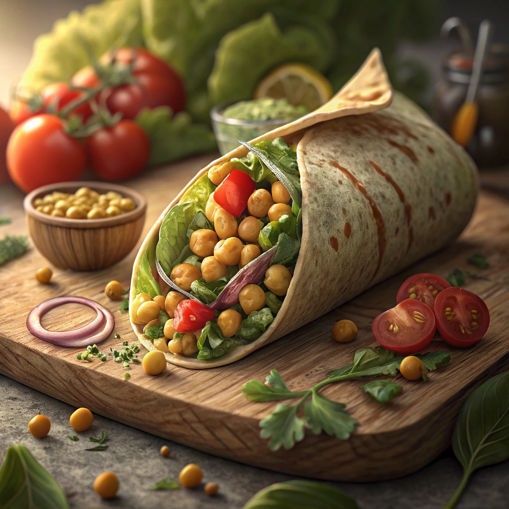 병아리콩은 저탄수화물 고단백 식품으로 혈당 상승을 억제합니다. 통밀 또르티야는 섬유질이 풍부하며, 채소들은 비타민과 미네랄을 제공합니다.